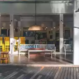 There's a common area, a pool table, a small bar, and a breakfast room.