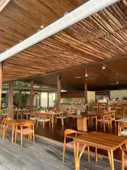 This restaurant is located at The Retraet, Kai Bae Beach, Koh Chang, Koh Chang District, Trat Province. The restaurant is right on the beach, with a balcony offering sea views and a view of the swimming pool. The atmosphere is wonderful. The restaurant is spacious, clean, and beautiful, with a natural setting that's incredibly relaxing.