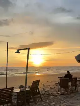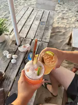 Highlights - A drink shop and various cocktails, a private atmosphere by the sea, the shop is very beautifully decorated, giving off a beach bar vibe, and most importantly, the sunset here is very beautiful. You can sit and watch it in a chill way.