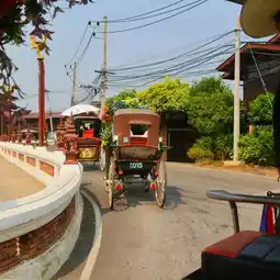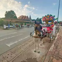 Wat Phra That Lampang Luang is a famous and popular temple among tourists. You can also ride a horse-drawn carriage, a famous attraction in Lampang Province, to see the chedi. The carriage is located in front of the temple. Prices depend on the agreed-upon route. It's open from 7:30 AM to 4:30 PM, and subject to change. Please inquire directly. Prices are approximately 300-500 baht per person. You'll get to see local life and the atmosphere, making it a truly charming experience.