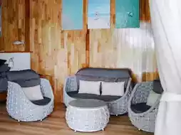 The rooms here are very well-organized. Every house has privacy. On the beachfront of the accommodation, there is a sitting area to relax and listen to the sound of the waves.