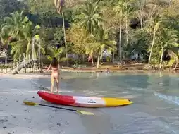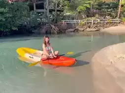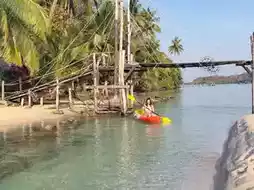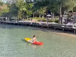 Today is the last day. We relax and play in the water at the hotel. We rented a kayak to paddle around Bang Bao Beach. There is a very beautiful wooden bridge at the end of Bang Bao Beach. Then we took a car to the pier to return to Bangkok.