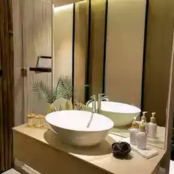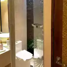 🚪The room is decorated in wood, brown tones, and there's a bathtub for soaking. I love it so much. It's so beautiful to take pictures.