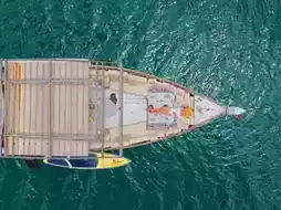 #Get a discount without relying on luck. Invite a gang of friends to go on a squid fishing boat, snorkeling to see the nest at Koh Kood, Koh Jai, Mareblu & Maresole Koh Kood. The wooden boat is beautifully decorated in a minimalist style. The service is very good. Dress up nicely because they have props for taking cool photos. In addition, they will take you to a secret beach, paddle a clear boat, paddle a Sup Board. When you are tired, there will be snacks. I must say that I am very impressed. Whether it is a couple's kitchen, it will be even more fun. #Koh Kood