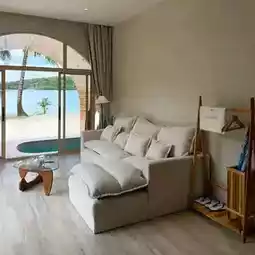 Complete facilities, no shortage, no minimum. Beautiful rooms with sea views, with private swimming pools. Walk 19 minutes to the sea, it's great, sister. You can swim at the beach, there are kayaks, restaurants, and bars. It's complete, no exaggeration. Highly recommended. It's the high season now, the water is clear, the weather is nice, you have to come.
