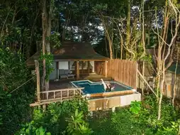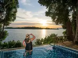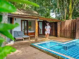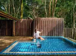 🍃 Experience nature, both the mangrove forest, the sea at the mouth of Klong Yai Kee Bay, and Yai Kee Beach. The room has a good atmosphere, comfortable. This time, Moo stayed in the Mini Pool Villa room. The room is spacious, fully equipped with facilities. There is a private pool to soak in and see the sea view. Especially when the sun sets, it's very moody.