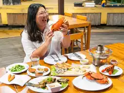 🥳 There is also a large communal swimming pool. Take beautiful pictures from every angle. Lie down and sunbathe and chill. A corner of the pavilion to relax, read a book comfortably, enjoy the sea breeze, order a cold drink, it's so good. The staff is lovely and takes good care of you. 😋 Fresh seafood using ingredients from fishermen who support the community's way of life, every menu is delicious | Breakfast is a buffet with a lot to choose from. 🌊 If you only have 3-4 days, you can refresh your body and find happiness in being with peaceful nature easily.