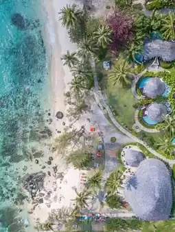 Plenty of photo spots, from net hammocks by the sea to wooden chairs under coconut trees