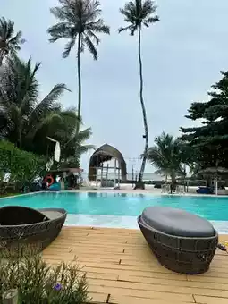 Beachfront resort with a great view, soft bed, and spacious rooms.