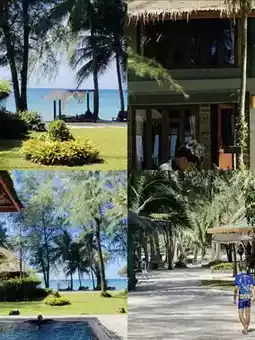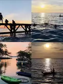 Tonight, we'll stay at Peter Pan Resort, located on the beach. The sunset in front of our accommodation is just a few steps away. Enjoy swimming, kayaking, and even a pool. Or simply stroll along the beach.
