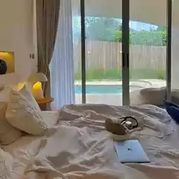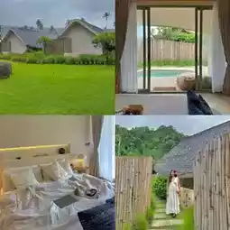 Surrounded by nature, the atmosphere is peaceful and very private, perfect for a relaxing getaway. Our room was decorated in white with blue accents and had a private pool. They have a beachfront bar and restaurant, along with a super chill communal pool. They also participate in the "Half-Half" program, so there are still rooms available. We're looking forward to your next vacation!