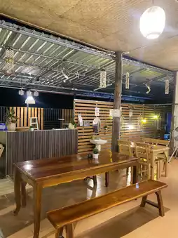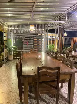 The restaurant is clean, spacious, and comfortable, with a large fan.