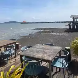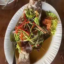 The restaurant is located on Koh Lanta's walking street and has a sea view. The sea breeze creates an atmosphere that makes the food even more delicious. There is also a fresh seafood pond for us to choose from, including lobster, sea bass, and squid.