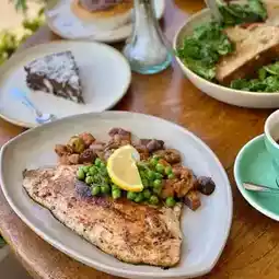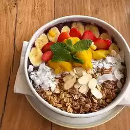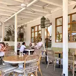 The place looks amazing with a beach/natural colour palette, a mix of rattan, natural woods and a touch of Mediterranean details. Tall windows illuminate the space and let in the palm trees that surround the cafe grounds. The staff are so so nice and make you feel incredibly welcome and warm.