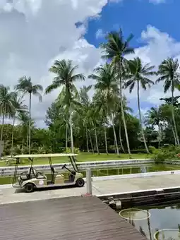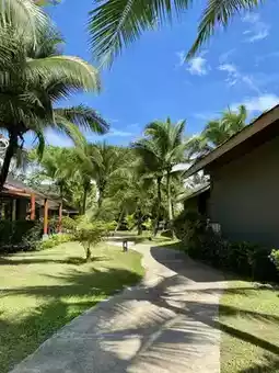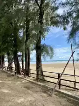 The resort is surrounded by large trees. It is just a few steps to the sandy beach. It is much quieter than other beaches. It is suitable for those who want to escape the hustle and bustle.