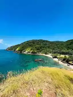 Down below, the beach is suuuper pretty. Soft sand, big rocks, and hardly anyone around, it’s the perfect post-hike chill spot. I even saw a few monkeys doing their thing (just don’t feed them, they get cheeky).