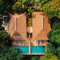 The rooms at the Ritz-Carlton are villas with private pools, surrounded by mature trees. If you're lucky, you might even spot a hornbill. The shady atmosphere is amazing. In the evening, you can watch the beautiful sunset right in front of your room.