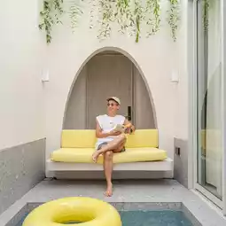 The highlight of the accommodation is the perfect combination of bright yellow and minimalist style, making the atmosphere both lovely and peaceful, ready to relax and recharge to the fullest. 🍃