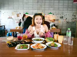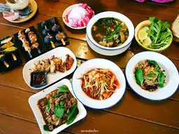 The shop serves Isaan food, Izakaya style, som tam, spicy salad, fried, spicy minced meat, boiled, grilled or single dishes. There are many to choose from. Or if you like to drink, there are many to choose from here. Plus, there are good promotions.