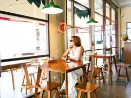 The shop is located by the sea next to the pier in front of the house. Get off the boat and walk for only 3 minutes to reach the shop. The shop is beautifully decorated in Japanese style. There are also cool photo corners.
