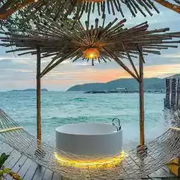 Another beachfront accommodation with beautiful sea and very white sand is “Cape Haven Koh Larn”, a beachfront accommodation with a great atmosphere that gives you the feeling of being very close to the sea. There are many corners to sit and chill, both inside and outside the room. No matter which corner, you can see the sea in a great way. In the evening, it is very chill. Sit and listen to the sound of the waves. There is a cool breeze. We had dinner in front of the room, which gave a romantic feel.