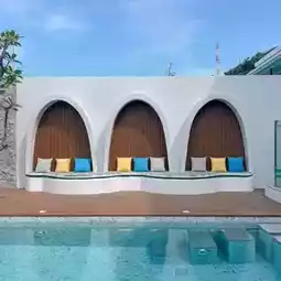 “Cher-Aim Beach Front Kohlarn” 💦 A resort on Ta Waen Beach with 7 types of rooms to choose from, ranging from Superior to 2-storey pool villas. There are many cute photo spots. Cross the road and you’re right at the sea. Good location, easy to find food, and free motorbikes for rent.