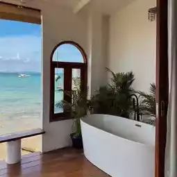 This is a small beachfront accommodation with a beautiful view, a good atmosphere, and very quiet. It is perfect for coming to relax and let the sea heal your heart the most. Most importantly, the price is not expensive. The photo corner is beautiful. 😍😍