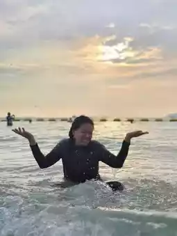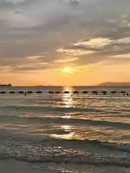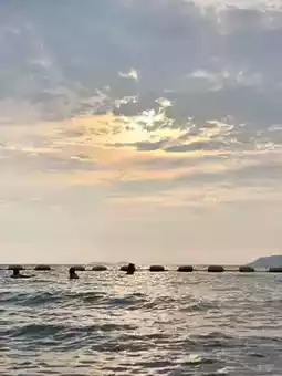 📍 Thian Beach: Wide beach, clear water, moderate waves, peaceful atmosphere, not too deep water, water activity zone including banana boat