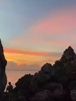 🪨 SecretSpot forArtists – The far right of the beach is lined with natural rocks, as beautiful as a scene in a movie