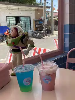 For cafe lovers, I have a cafe to recommend called Jinji cafe. It's perfect for those who love sweet pink. The drinks are delicious and inexpensive, starting at around 80-100 baht per glass. The prices are super cute. There are also many photo spots. The cafe is on the way to Ta Yai Beach. If you come to visit Koh Larn and want to visit a cafe on Koh Larn, I recommend this one. The shop opens at 11 a.m. onwards. #Koh Larn Cafe #Koh Larn #kohlarn #cafe #visit Koh Larn