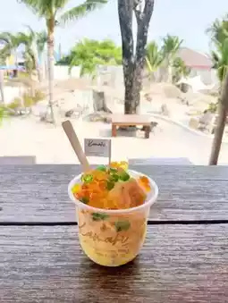 The menu has both coffee, snacks, and refreshing drinks that are perfect for the seaside weather. The taste is good, you can take pictures, and the location is great. You can see the sea, the feeling is great.