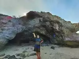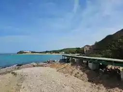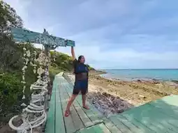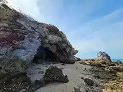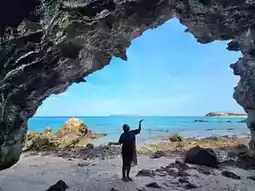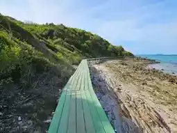 Another hidden gem worth recommending is the Green Bridge at Samae Beach. You can park your vehicle at Samae Beach and walk approximately 400 meters to reach it. This green wooden bridge stretches along the rocky cliffs near the beach. The atmosphere is serene, with few visitors. As you walk across the Green Bridge, you'll come across a cave that is popular for taking unique and stylish photos. It's another secret spot on Koh Larn that you must visit.