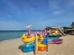 Samae Beach, Koh Larn is another beach where you can enjoy swimming. It is less crowded compared to Tawaen Beach. The beachfront area is spacious, the water is clear, but the waves can be quite strong compared to Tawaen Beach. You can also sit and watch the sunset at this beach. The beachfront restaurants close around 9 PM, and after that, the area becomes very quiet, making it ideal for a peaceful retreat. There is a hidden cave that requires a short walk past the beach, which serves as a great spot to watch the sunset.
