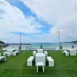 Tawaen Caza Sky Camping is located at Ta Waen Beach, not far from the pier. This is a tent-type accommodation. The location of this camp is excellent because it is right next to the pier. There is a 7-Eleven, a restaurant, and a cafe on the ground floor, and a Cafe Amazon, which is very convenient. The tents are nice and cool with air conditioning. The shared bathroom is very clean and well-maintained.