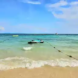🏖️ The beach is clean, the water is crystal clear, and there is a designated swimming area on the right side of the beach. It's ideal for those seeking a peaceful retreat 🏝️💧.