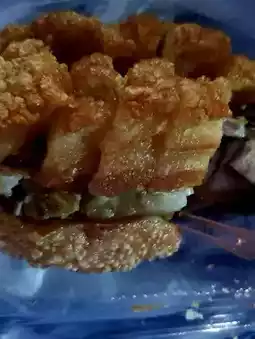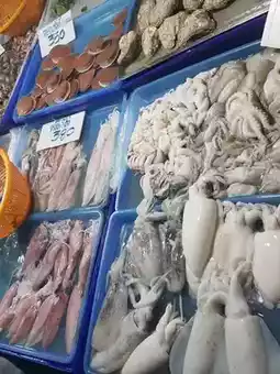 Those who love fresh seafood must stop by! The market in front of Wat Mai Samran has seafood to choose from by “weighing by the kilo” 🧺 and let the restaurant steam, grill, and roast it for you! There are also tables for you to sit and eat at and enjoy. 🍽️ The highlight is the spicy seafood sauce and the reasonable price, perfect for big eaters. 🦀🔥 I really like this one. If you want to eat something, just walk around and choose. The crispy pork in the market is also delicious, crispy, and soft, just right.