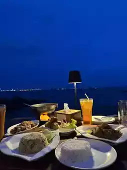 We ate at a local seafood restaurant, and it was amazing! Fresh squid, spicy seafood dipping sauce, and grilled prawns that were so good they left us speechless (and drooling, haha).
