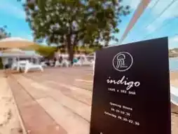 Indigo Cafe, Koh Larn, is a charming white-themed cafe contrasting beautifully with the blue sea. Located within Rimtalay Resort, the cafe features a glass rectangular design with a white beach-inspired decor. It offers stunning photo spots such as a white staircase against the sky and sea, a seaside door, and vibrant surfboards. If you're visiting Koh Larn and looking for a place to relax, escape the heat, and take beautiful photos, this is the perfect spot.