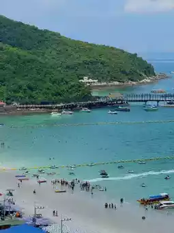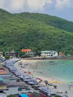 #GetDiscountsWithoutLuck One of the most popular beaches on Koh Larn is “Hat Ta Waen”. It is a very lively beach during the day because there are many activities to do. There are many restaurants along the beach. The sea is beautiful. There is a viewpoint that offers a wide view of Haad Ta Waen. I must say that it is very beautiful. It is a popular spot that people who visit Koh Larn must stop to take pictures.