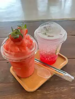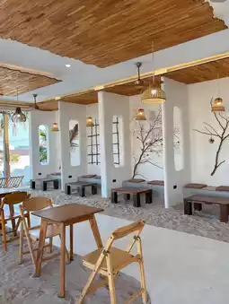 Kamari Cafe & Resort Kohlarn is a lovely place to visit, with the resort and cafe areas clearly separated. We entered the cafe area, which offers a wide selection of drinks, all of which are adorable. This is a must-try for content lovers. Besides drinks, they also have a wide variety of cakes, ice cream, and other delicious food. The interior is decorated to create a beach-like atmosphere. ✨💫☘️