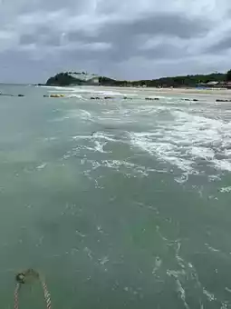 As soon as you walk along Samae Beach on Koh Larn, you'll be immediately captivated by its crystal clear waters, beauty, and tranquility! This nearly one-kilometer-long beach, located on the southwest side of Koh Larn, boasts a spacious area perfect for swimming and taking photos without feeling cramped. This beach stands out for its tranquility and relative quietness, and is frequented by tourists, especially foreigners. A popular highlight is the Stingray Building, the island's electrical control building, decorated to resemble a fish. Visible from the beach, the building's left side features a green wooden bridge leading to a secret cave, a charming and unseen photo spot. Beach chairs are available for rent and a small beachfront restaurant is perfect for filling your stomach.