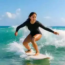 This afternoon, I tried surfing for the first time. It was more fun than I thought! The waves weren't too strong, perfect for beginners like me. Plus, the view of the crystal-clear blue sea against the green mountains behind me was absolutely breathtaking. 💙