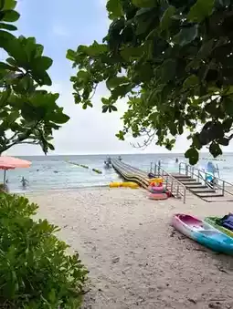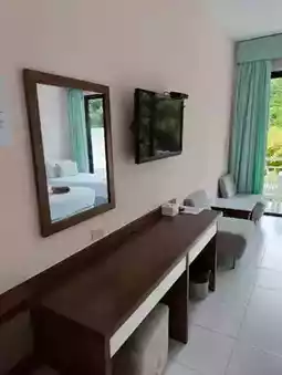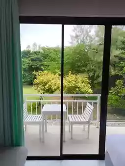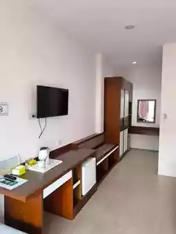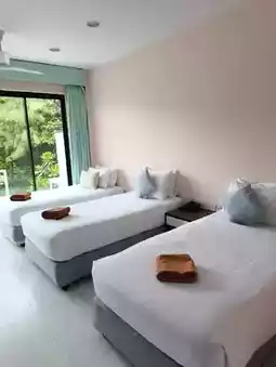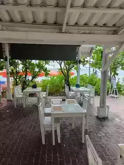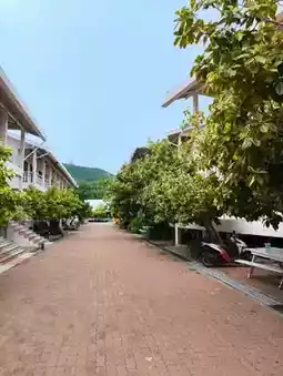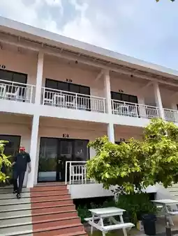 Atmosphere: The resort is located on Samae Beach, one of Koh Larn's most beautiful and peaceful beaches. From your room, you can walk directly to the beach. The surrounding atmosphere is filled with tranquility, the gentle sound of waves, crystal-clear water, and a view of the fine white sand. The hotel is a two-story white building, arranged in a long row. Rooms have long balconies, each facing the other. The decor is simple yet clean, with a small garden and trees planted at various points, creating a shady atmosphere. The beachfront area features a single-story white wooden building, housing the reception area, restaurant, and beachfront bar. The open-air building welcomes the sea breeze all day long, perfect for dining and enjoying the sunset. The rooms are simply decorated and clean, and come fully equipped with amenities, including air conditioning, refrigerators, en suite bathrooms, and private balconies. The resort also provides a shuttle service from Na Baan Pier, making travel convenient.