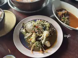 Everyone, we would like to recommend this restaurant. It's very delicious. It's seafood. We want you to come and try it. The restaurant is located on Koh Mak. The restaurant is called Baan Muang Siu. The menu on the table that we ordered had Pla Hiw with chili sauce, Spicy crab salad, Stingray curry, Thai fish sashimi, and mussel sashimi. Everything was good. The sauce was also good. Anyone who tries this flavor should be addicted like us. If you have a chance to visit Koh Mak, we really want you to try it.