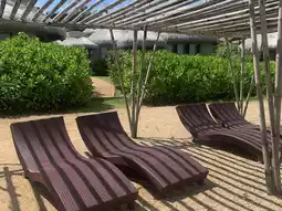 There is a beautifully decorated restaurant. There is a variety of food to choose from. There is also a cafe where you can sip chic coffee. What I love the most is when the tide is low, walking along the beach to watch the sunset on the right is very romantic.