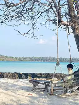 It's a great place to relax or swim. Most visitors are foreigners, but there aren't many Thais. During low tide, you can see the sea parting. However, when I visited, it had just rained and the tide was high, so I didn't see it.