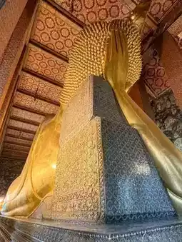 The Reclining Buddha at Wat Pho is one of Bangkok’s most iconic attractions, drawing thousands of visitors daily. This 46-meter-long, gold-covered Buddha symbolizes Nirvana and enlightenment, with its 5-meter-long feet inlaid with mother-of-pearl depicting 108 auspicious symbols. The temple complex also houses over 1,000 Buddha images and is famous as the birthplace of traditional Thai massage.