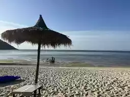 Really nice beach! Calmest water on the island to swim in! Many shadow spots too if you don't wanna sit at a restaurant. I recommend getting early, like before 1pm, because after 1pm the touring boats come back and then the beach is full with boats, which is a nice view but if you want to swim maybe not ideal. Also taking a taxi up if you wanna skip the hike up is only 100bah and you can go into any restaurant and they'll call you a taxi 😉
