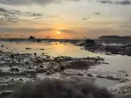 Sunset time is magical and the uptide brings the beach back to the shore.