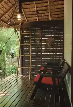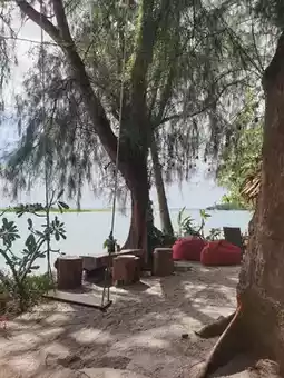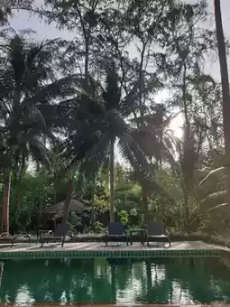 The resort offers a full range of amenities, including a swimming pool and paddleboarding. For those who enjoy activities, or simply want to lie down and read a book amidst the soothing sounds of the trees, a hammock is ready to welcome you. The atmosphere is truly perfect for relaxation.